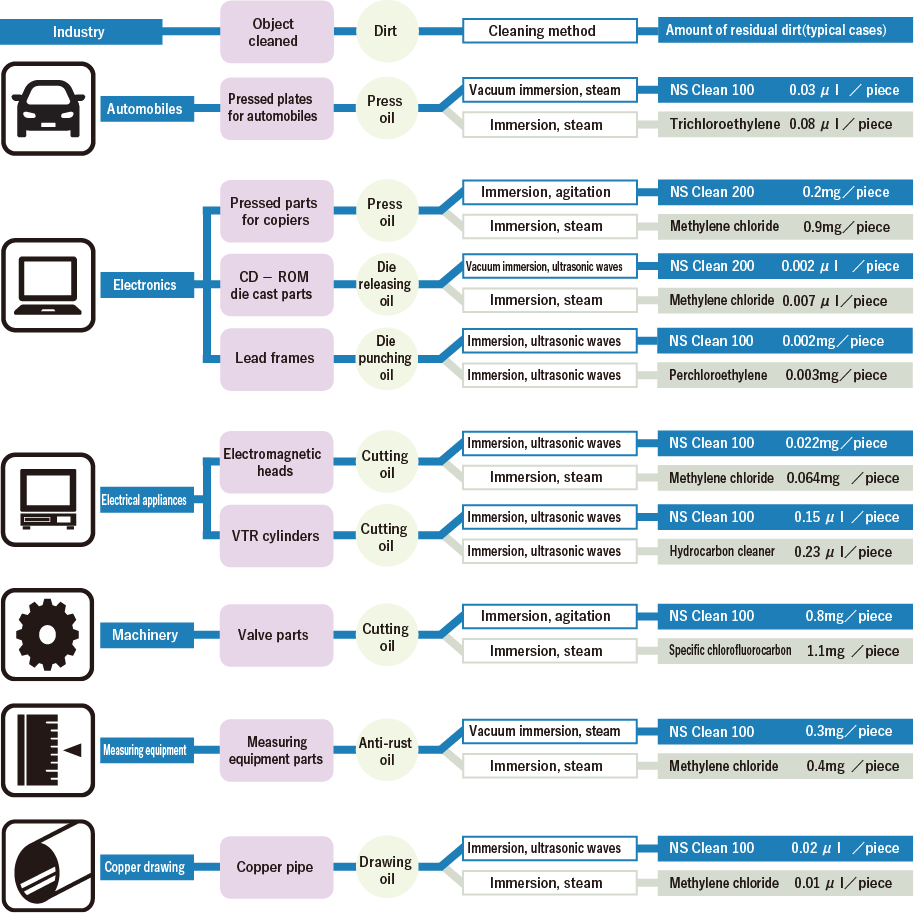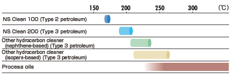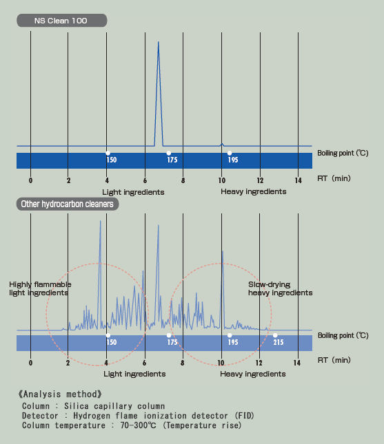 “NS Clean©,”composed of a single substance of paraffin-based hydrocarbon, has a very narrow boiling point range.
